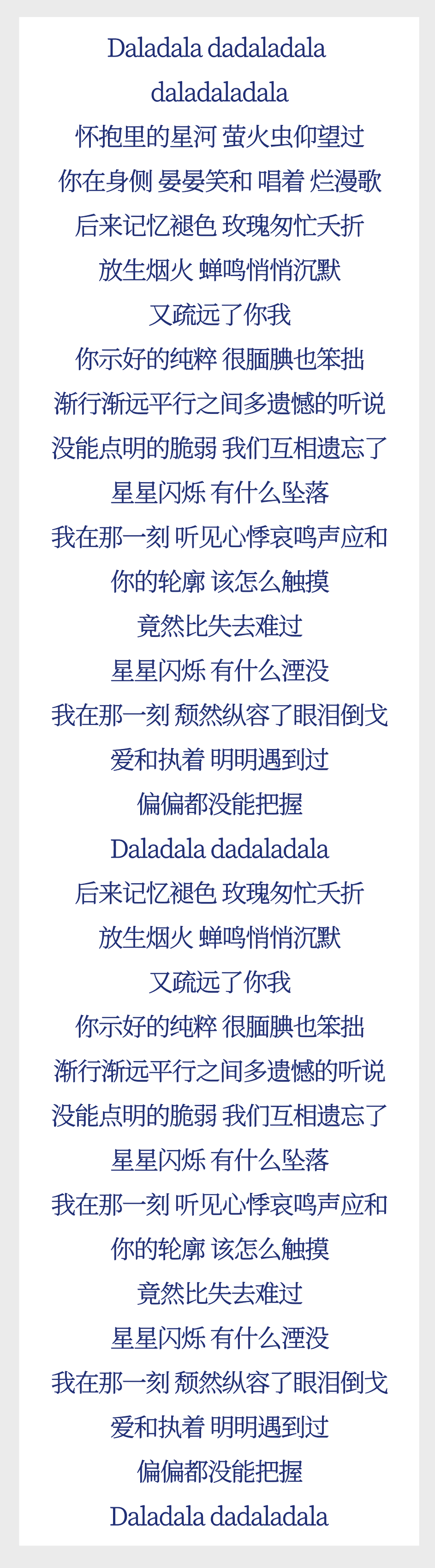 《没握住的星》是一首一边怀念,一边遗憾,一边反省的歌曲。整首歌曲吉他的弹奏让原本忧伤的“遗憾”焕发出青春的气息,加之任然的疗愈系音色,只剩下清清淡淡将遗憾随风而去,将美好留在心底的真挚。不撕心裂肺,不歇斯底里,这也是当下年轻人需要的对爱情的解读和尊重。