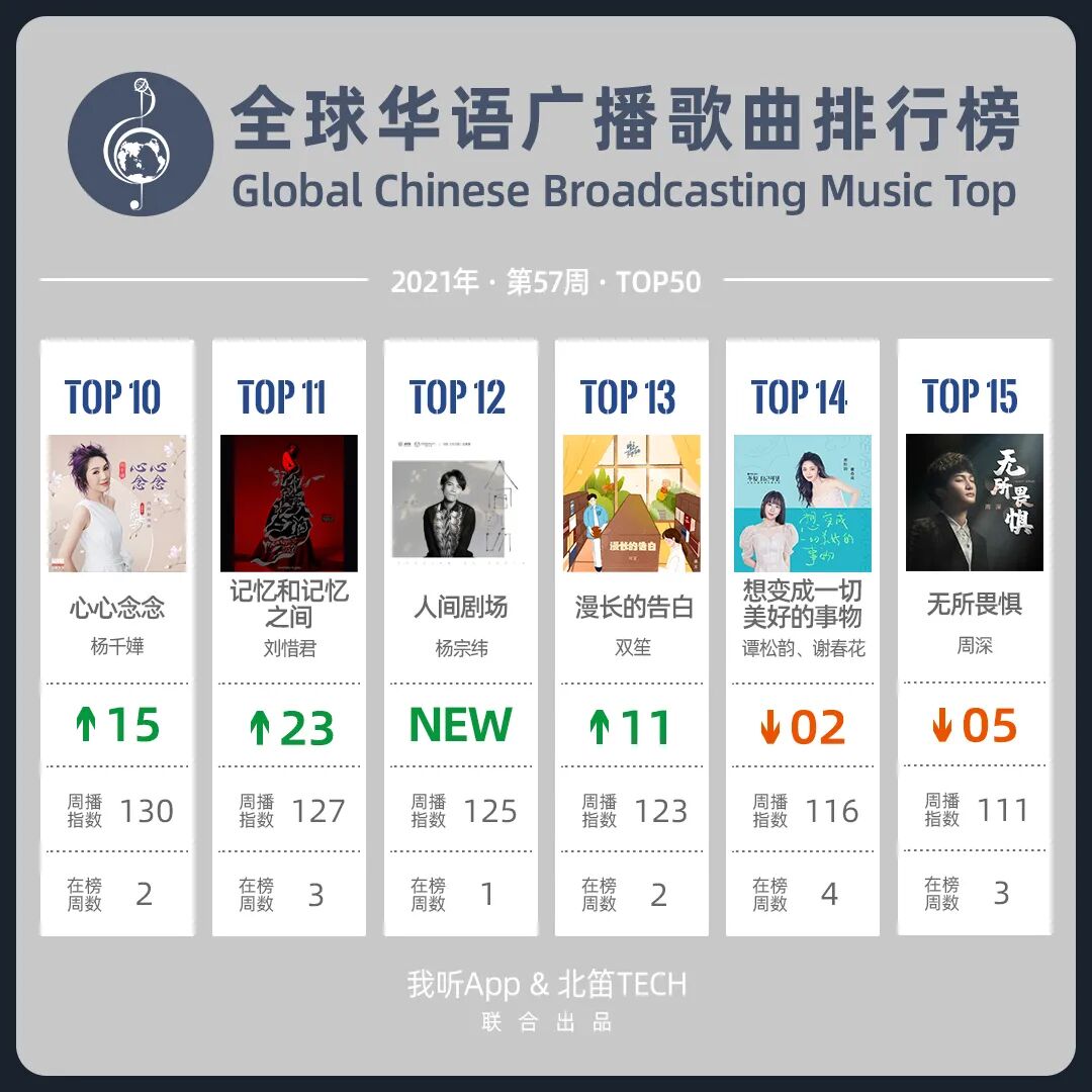 全中国都在听,这里是全球华语广播歌曲排行榜。音乐有灵魂,数据有生命,我们的榜单汇集了千家电台的音乐播出指数,用数据定义流行。欢迎你在收听节目的同时,搜索新浪微博“我听音乐FM”或者微信公众号“全球华语歌曲”,与我互动。