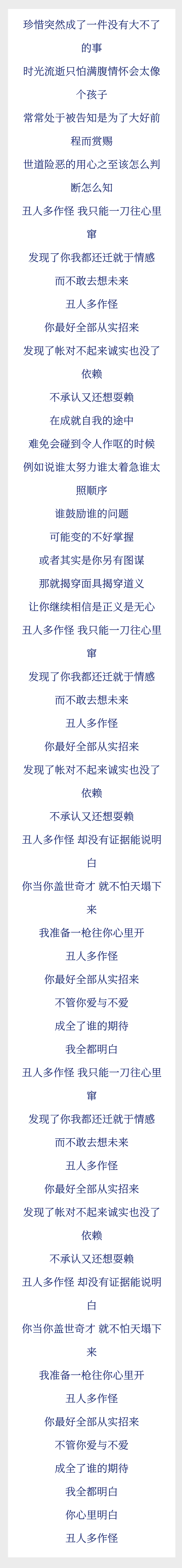 近两年,告五人不仅唱遍各大音乐节、更完售台湾中大型的live house,可说是新世代乐团里,人气名列前茅的一组。这首《丑人多作怪》来自告五人在第二张专辑《运气来得若有似无》中持续挑战自我,脱离常规的录音室,搬回宜兰包栋民宿录音。性情坦率的三人组,甩掉拘束更自在唱着摇滚乐的率性节奏与微醺的醉人诗篇,他们常喊说要唱到歌迷结婚生子,用音乐持续燃烧青春的起承转合与人间的春夏秋冬。
