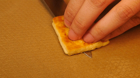 豆腐的长宽可以根据自己买的豆腐的大小来定,我切的片的长宽差不多是4*6cm,你们也可以参考一下。