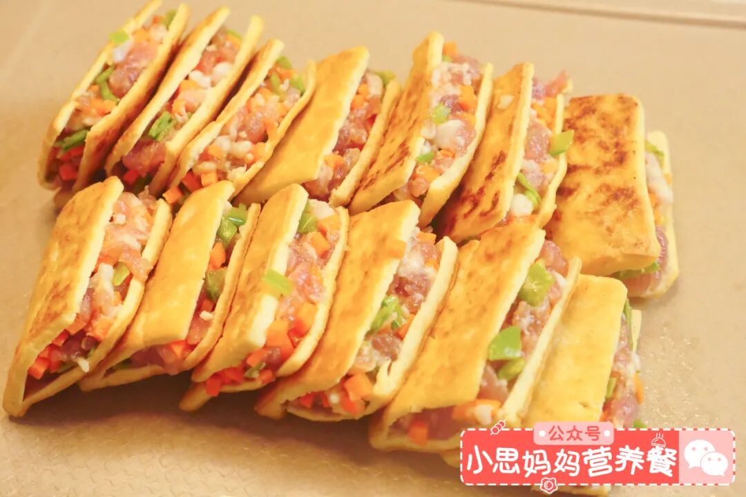 这豆腐不仅好吃,还巨便宜,2块钱就能买一大块。含钙量也高,好吸收好消化,要是想给娃补钙,豆腐必须得安排一下。这次我在煎豆腐的基础上,来了一点不一样的东西,做了一个肉肉的夹心,配上酱汁,讲真的家里的米饭真的不够,因为太下饭了。![]()