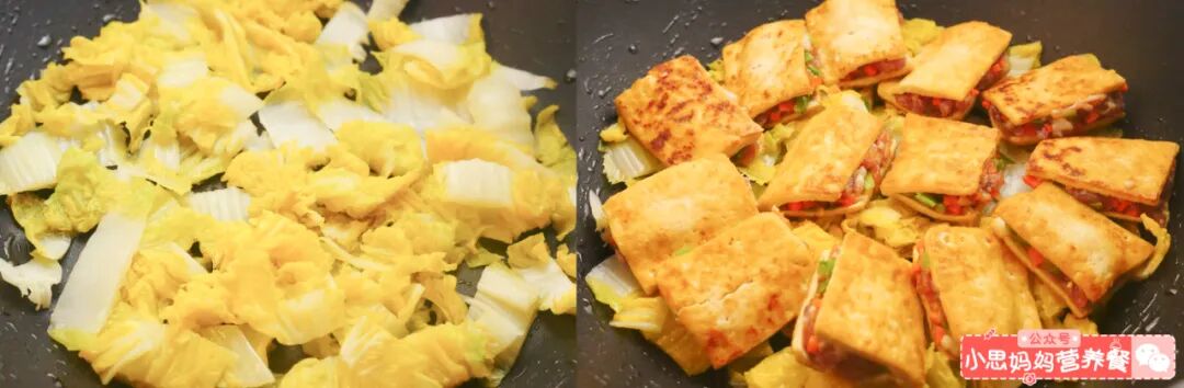 起锅刷上油,把娃娃菜铺满整个锅底,再把豆腐夹铺在娃娃菜上。真的是超级下饭,肉肉因为酱汁的炖煮,非常的有味道,小思同学炒鸡喜欢吃,嫩嫩的豆腐,香香的肉,清爽的娃娃菜,一锅米饭真的不够。