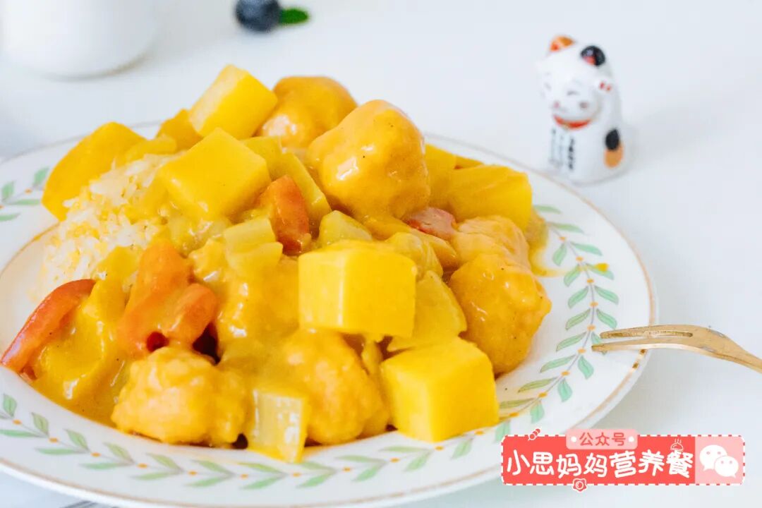 调味说明:咖喱本身就是调味品,所以3岁左右的宝宝吃味道足够啦,如果大宝宝对味道比较挑剔,可以再加一点酱油;