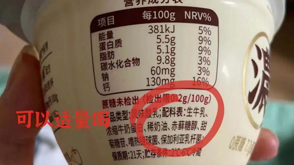 其实我也不是很纠结,给她吃的酸奶配料里有白砂糖、果酱这类配料来辅助调味。