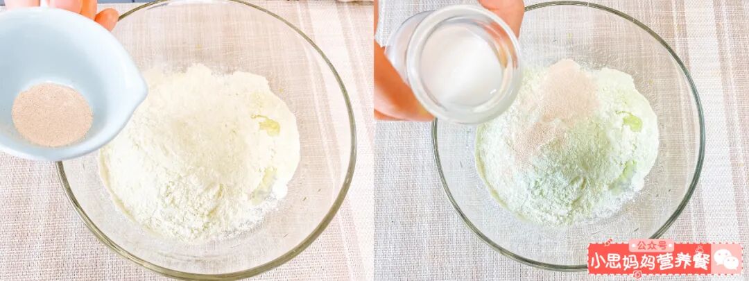 tips:家里没有菠菜面粉的姐妹就用普通的中筋面粉,每种面粉的吸水量都不太一样,加入牛奶的重量要根据实际情况进行调整。