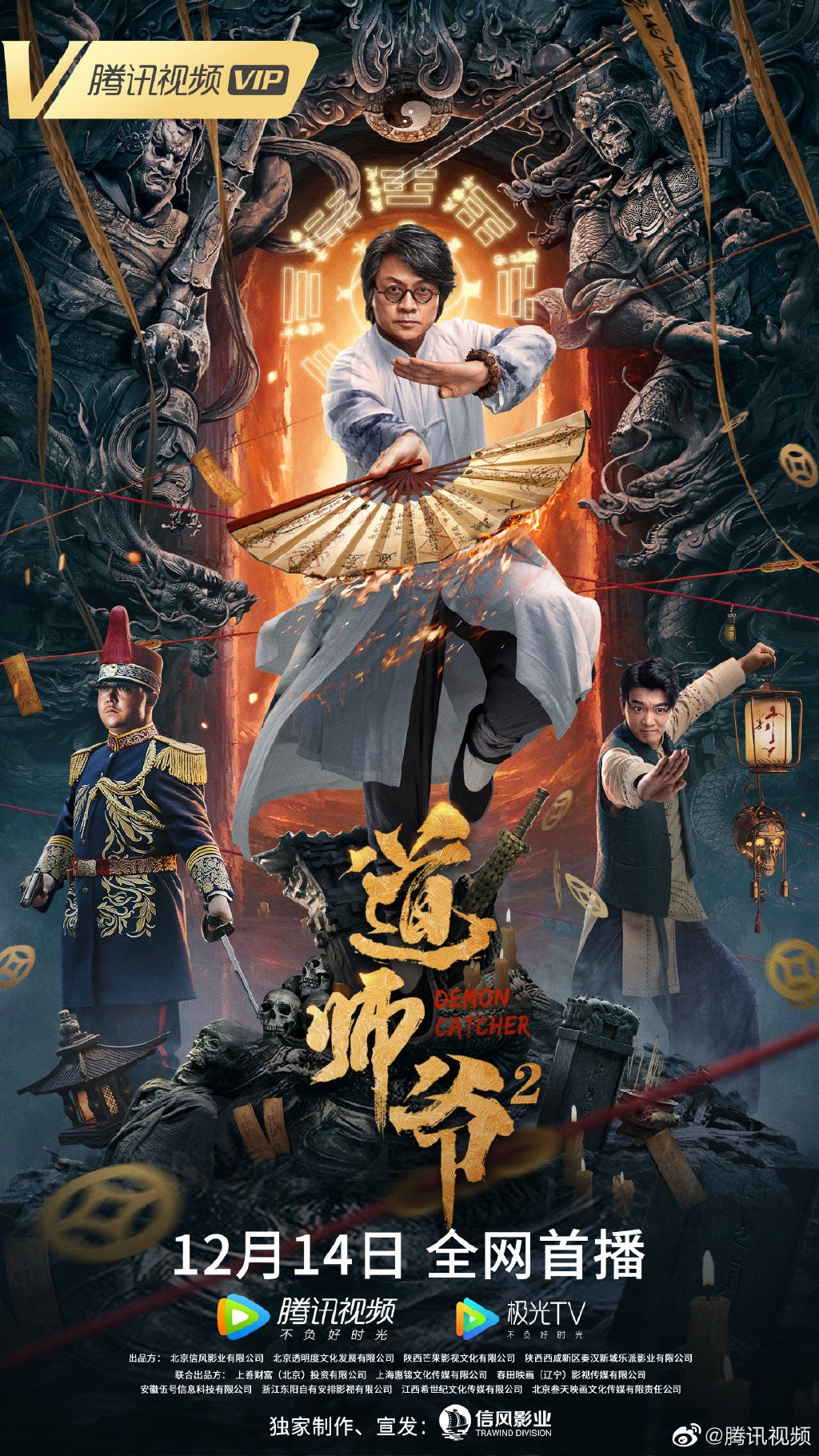 由郎峰、岳冬峰主演的网络电影《道师爷2》定档12月14日上线爱奇艺、腾讯视频。