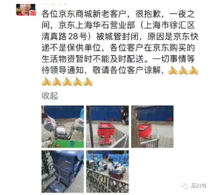 上海静默期间京东上演敢死队”自杀式赴沪大戏,群情振奋,但京东在上海的营业部却被城管封闭,原因是其“非保供单位”。