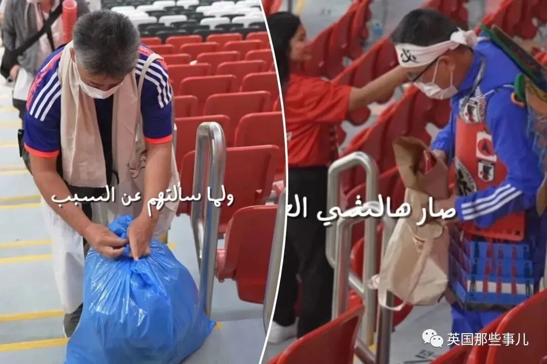 Omar Farooq 在视频中说:“看到了拿着大袋子的日本球迷,捡起脚下的饮料瓶和吃剩的东西,把体育场打扫干净”,当他问到其中一名日本球迷为何要这么做时,对方回答说“我们是日本人,不会留下垃圾的。我对这个地方非常尊重。”