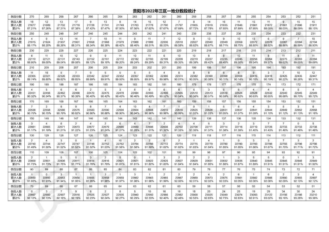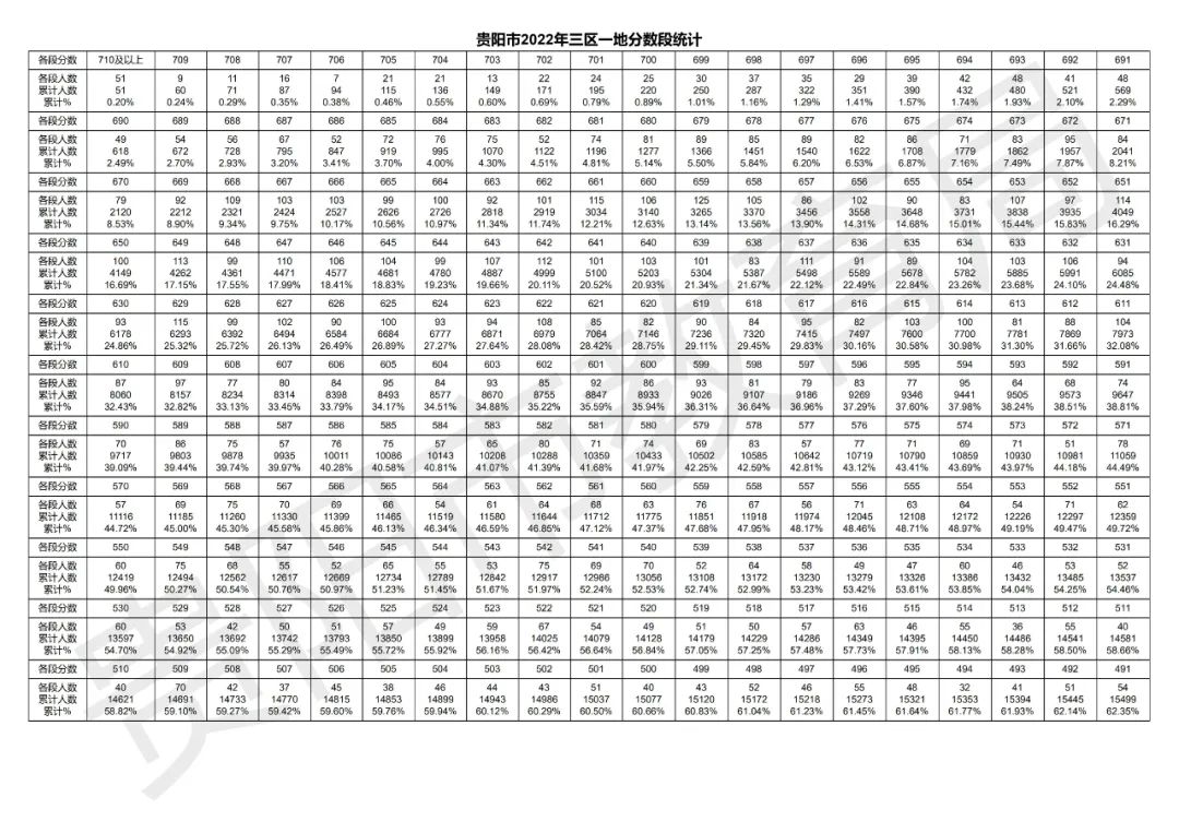 “三区一地”(云岩、南明、观山湖、原小河地区)普通高中学校招生第一批次最低控制线为585分,第二批次最低控制线为522分;