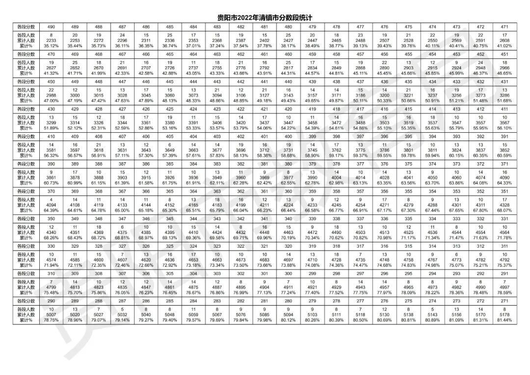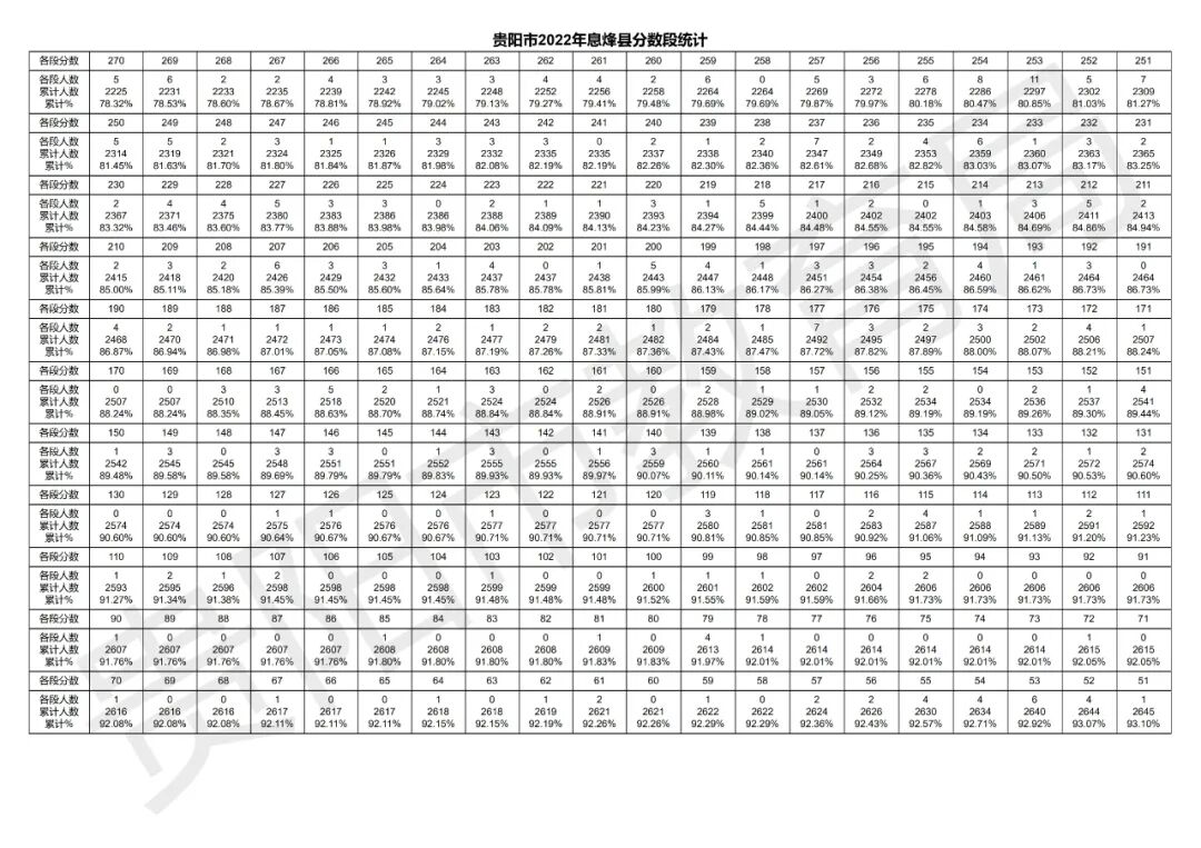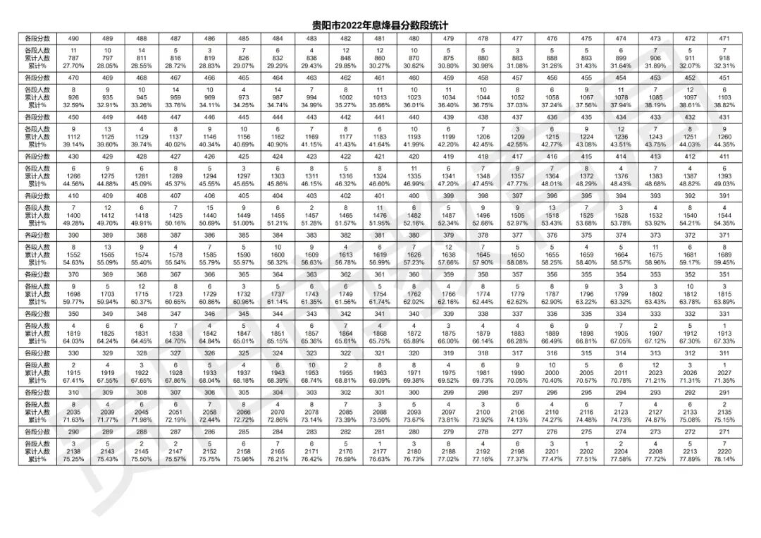 全市普通高中第三批次最低控制线为420分,花溪区、息烽县、修文县为400分。