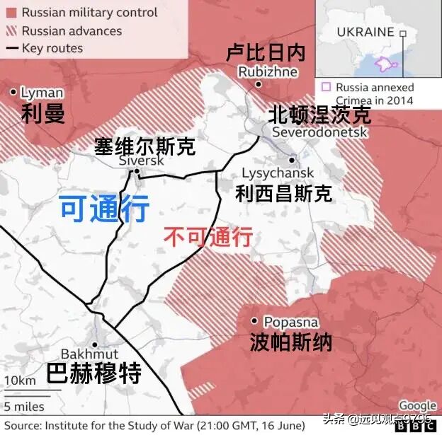 大家看到,打下巴赫穆特,俄军就与攻打波帕斯纳的部队会合,从南面攻打利西昌斯克。而俄军还可能从顿涅茨克河的下游从东面渡河,也汇合进攻利西昌斯克。从南面的进攻还有大片郊区农村,俄军的推进可能还会受到乌军阻拦,推进只是时间问题。