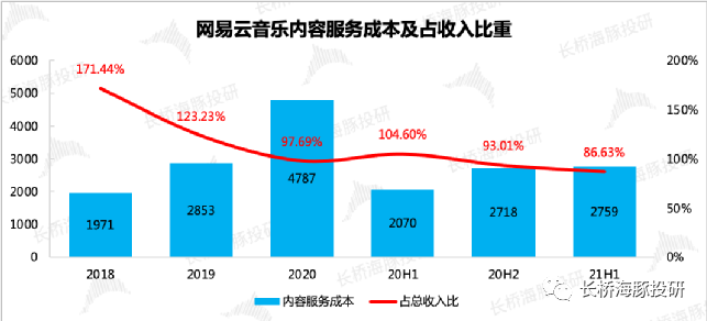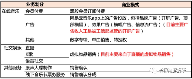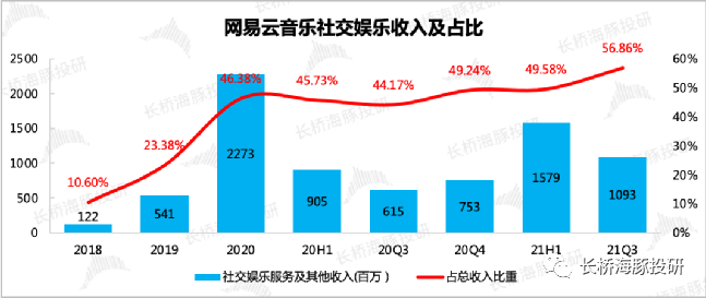 截至目前,网易云音乐的已注册独立音乐人规模,已达到30万人,位居全国第一,腾讯音乐23万人排第二。到这里,用户不再将云音乐平台仅仅视作一个播放工具,更是一个具备“UGC内容(歌单、现象级评论)+PUGC内容(独立音乐人)”的音乐社区。社区意味着粘性更高,用户的忠诚度也更强。按道理来说,在互联网流量增长瓶颈的当下,应该匹配更高的价值。但在市场眼中,对于不同的社区平台给予的定价也有着天壤之别。本质上,还是看平台本身的变现前景如何。比如,对于UGC平台鼻祖——豆瓣社区,市场普遍定价不高,主要原因则在于没有匹配一个合适的变现模式来挖掘足够的用户价值。而今年以来,在经历了娱乐、广告业的监管整顿,竞争加剧下的估值泡沫破灭之后(如B站、快手、爱奇艺),市场对社区平台的看法也明显有了一些转变。a)在成长初期,平台通过自己独特定位,市场可以容忍以亏损换用户高速增长。b)但一旦流量爬坡过半,市场希望能够看到投入产出比提升,盈利能够持续改善的经营趋势,或者说平台壁垒有显著加固。而不是砸钱下去只出了几朵小水花,比如用户单季度增长不错,但行业的竞争却仍然胶着,想要长期的增长则需要持续的投钱。直白点说,就是愿意长期陪伴的资金不多了,动不动就长达5年、10年的“烧钱”游戏基本可以宣告结束。因此,此时上市的网易云音乐要获得资金认可,除了需要用户有高速增长的空间,还得需要一个能够走通的商业模式。用户增长自然是当下小流量规模的网易云音乐主要讲的一个逻辑。截至2021年中,网易云音乐的月活为1.85亿,相比2020年底1.8亿又新增了500万用户。更亮眼的是付费用户的增长,截至上半年付费用户2600万人,相比去年同期翻了一倍,付费率达到了14%,远超腾讯音乐的11%。这样的数据对比腾讯音乐6.4亿的月活、7000万的在线音乐付费,似乎还有不少潜在增长空间。在招股说明书中,云音乐强调了自己平台以年轻用户为主,90%为90后、00后用户群体,再加上粘性较高的社区属性,云音乐对未来的用户增长充满信心。“Z时代+高粘性+UGC社区”,海豚君似乎看到了B站的影子。云音乐的信心也并不是毫无根据,在总盘子还能看到扩张的情况下,重新出发的云音乐顺应趋势也总能够吃到肉、喝到汤。根据CIC的预测,2020年国内在线音乐用户接近6.6亿,未来5年内复合增速3.8%,预计2025年可以看到近8亿的总规模。回头再看云音乐不足2亿的用户,成长的空间够大。但同行也不是吃素的。后版权时代一个显著趋势是,腾讯音乐等竞争对手,在丢失了版权优势后,不再佛系躺平,也在发力做社区和独立音乐人,今年以来独立音乐人规模几乎保持三位数的高速发展,截至二季度末腾讯音乐的独立音乐人规模很快达到了23万人。此外抖音、快手等短视频平台也对数字音乐市场虎视眈眈,版权门槛拉低后,他们正式进入战场的速度也在加快。因此独家版权取消,对于云音乐补充版权内容供给是利好,但与此同时,自己的基本盘也在面临竞争对手更多的精准打击。未来8亿的用户盘子,云音乐真正能吃到多少空间,站在当下还真不好说。更何况“网抑云”的青春伤痛文风,也并不是所有用户都青睐。如果按照当前云音乐的用户结构(90后占90%),以及在90后、00后音乐用户中的渗透率水平(64%),粗粗拍个乐观预期的云音乐用户空间在3.2亿左右,这个数据背后隐含的前提是云音乐在面对同行竞争时,可以守住自身的优势。要想更进一步,就得学B站“破圈”。虽然平台调性不一样,但在赚钱上,云音乐还是走的老路子——拉用户靠音乐,做收入靠直播。以下是海豚君整理的业务模式,可快速浏览下,基本与腾讯音乐无异。在版权战中腾讯音乐大获全胜的2018年,网易云音乐上线【直播LOOK】功能,正式打开社交娱乐业务来推进商业化变现。随后又上线【歌房】功能,以及独立应用【声波】app(主打语音交友)、【心遇】app(主打匿名社交、K歌)。或许是在线音乐太难做收入了,社交娱乐自从开拓,对总营收的贡献越来越大。今年三季度更是突破了50%,整个业绩架构也越来越像腾讯音乐。但从去年以来,腾讯音乐的社交娱乐业务已经能明显看到短视频冲击后的影响,付费用户快速滑坡,靠留下来的忠实用户拔高付费来维持收入的正增长。回到云音乐上,它的社交娱乐业务虽然还处于高速开发阶段,但相较去年,今年的增速已经明显慢下来。如果不从争夺用户的竞争角度,单纯从用户习惯——付费率来看,云音乐的社交娱乐业务还可以继续开发。截至6月底,社交娱乐的付费渗透率为2.6%,与一众直播平台相比还有不少提升空间。不过云音乐整体的社交娱乐活跃用户却在继续下滑,单用户付费也在随秀场直播行业发展的大趋势走低,因此后续的增长短期还是要继续靠付费率来拉,长期则仍然难以改变整体行业萎缩的态势。如果未来社交娱乐的高增长不能持续,那在云音乐补足了版权内容后,音乐付费能否重现生机?虽然音乐付费空间没有社交娱乐大,但目前来看,抖音快手的内容库填充还需要一段时间,市面上的主要玩家就是腾讯音乐和网易云音乐,两家几乎占了90%以上的市场份额。(2)在线音乐:订阅做收入太难,主要作用在促销引流云音乐的在线音乐业务,包含的会员订阅收入、广告收入以及数字专辑等其他在线音乐收入,近两年还处于一个快速增长阶段。但如果拆分来看,增长几乎是由用户增长