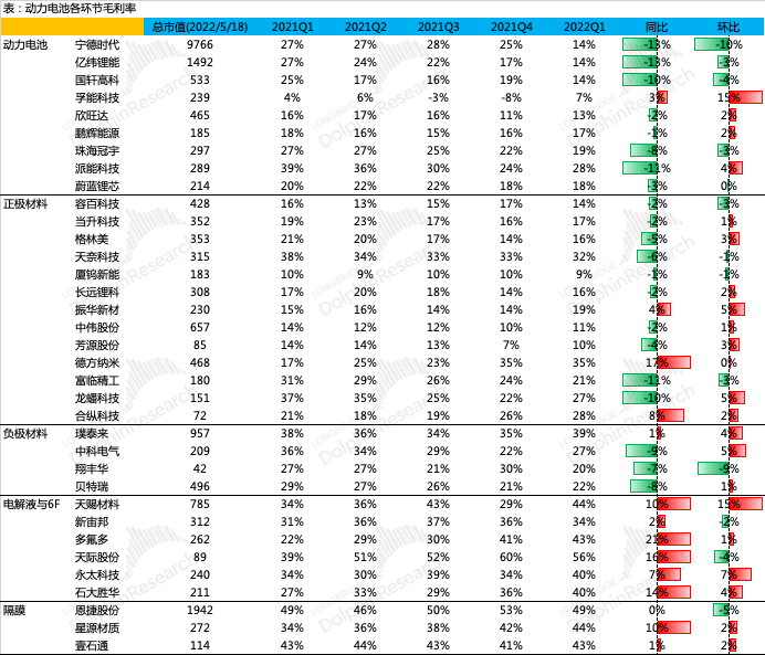 (2)至于板块盈利差异,长桥海豚君认为隔膜和负极盈利大概维持稳健、动力电池环节盈利修复是主基调、电解液板块需要警惕因价格快速回调而盈利受损。