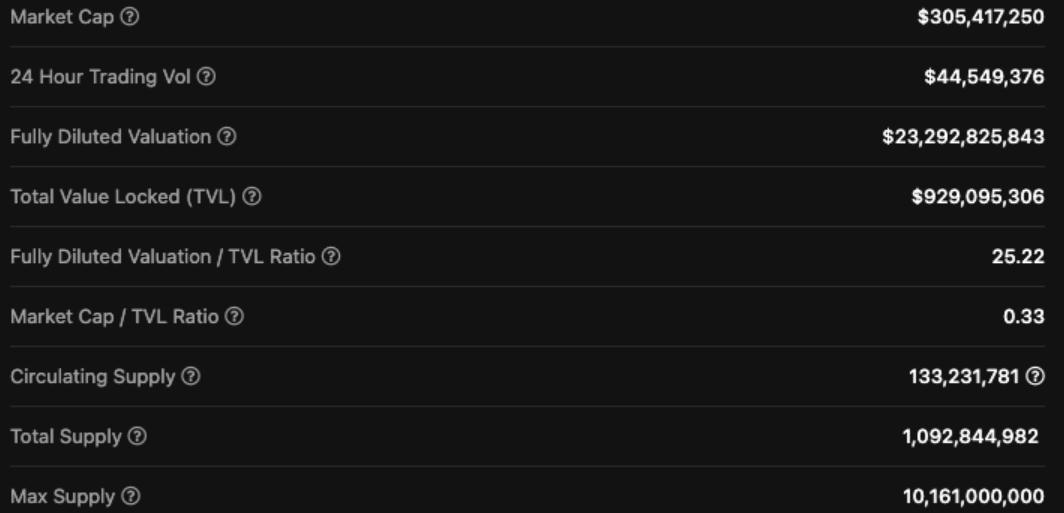 这个Token的流通供应量约为 133M,最大供应量为 10B。对于你的Token来说大约有 8 倍的稀释风险,这是一个重大问题。如果明天所有的Token都被释放,你的Token价值将是昨天的 1/8。假设您今天以 3.05 亿的市值买入,预计 5 年内将达到 100 倍。这将使市值达到 30B(相当高,但在加密货币中并不罕见),但完全稀释后的估值将达到 2.3T(高于今天的加密货币市值)。