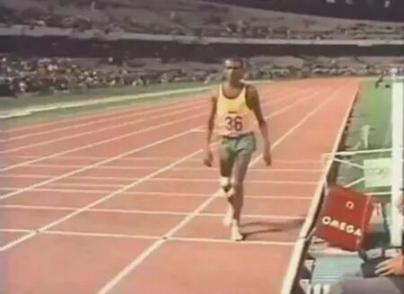 这是一张北京奥运会传递圣火的照片,照片中的主角不是什么奥运冠军,而是奥运史上唯一一个倒数第一,却成为传奇被载入奥运史册的人。1968年刚刚独立的坦桑尼亚第一次派代表亮相墨西哥奥运赛场,他就是已经30岁的马拉松选手阿赫瓦里,墨西哥城海拔将近2300米,空气含氧比正常低30%,马拉松运动员的每一步都很吃力,运动员的距离越拉越大,随着前三名陆续跑入终点,而很多选手却纷纷半途退赛。