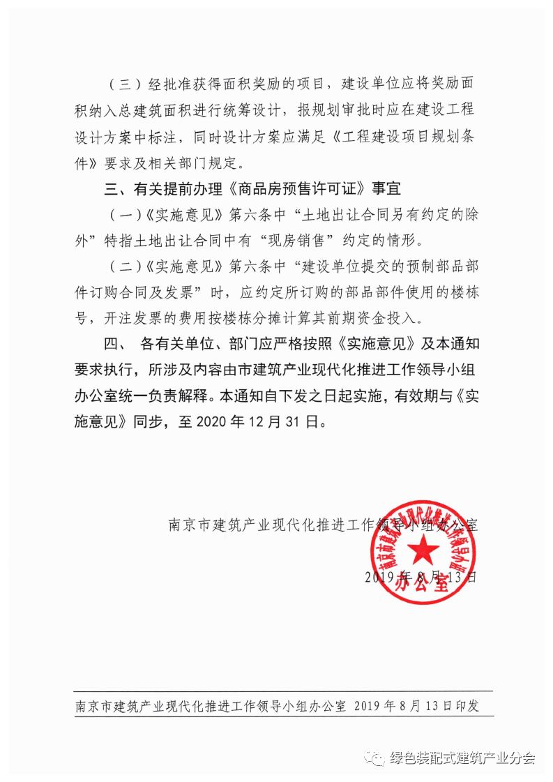 南京市关于进一步明确装配式建筑指标控制及奖励政策执行等相关事项的通知