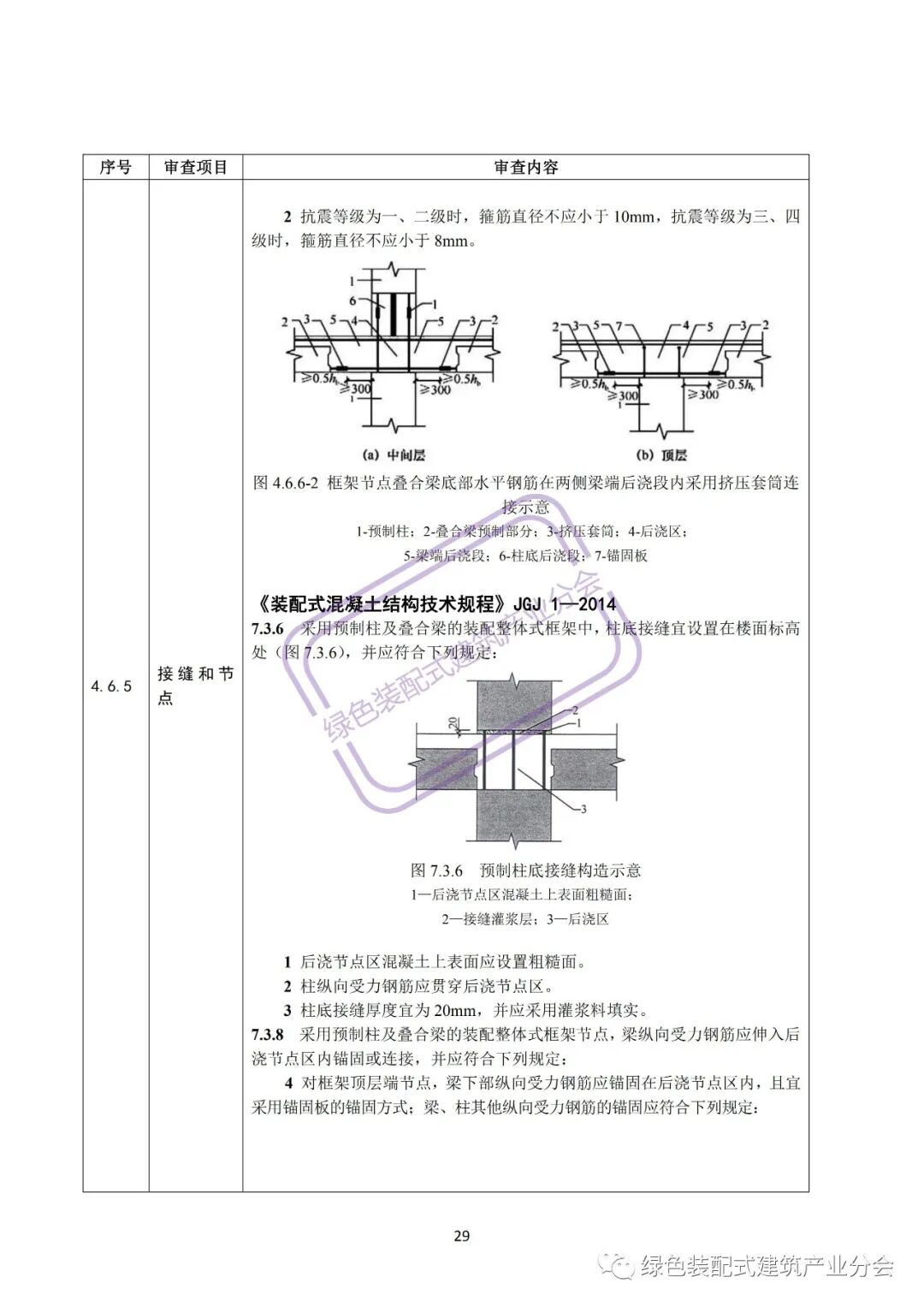 本要点由两篇章组成,第一篇为政策性审查部分,主要审查装配式相关政策文 件是否符合要求;第二篇为技术审查部分,共分为四个章节,主要内容有:1、总则;2、装配率审查要点;3、建筑专业施工图设计审查要点;4、结构专业施工图设计审查要点。