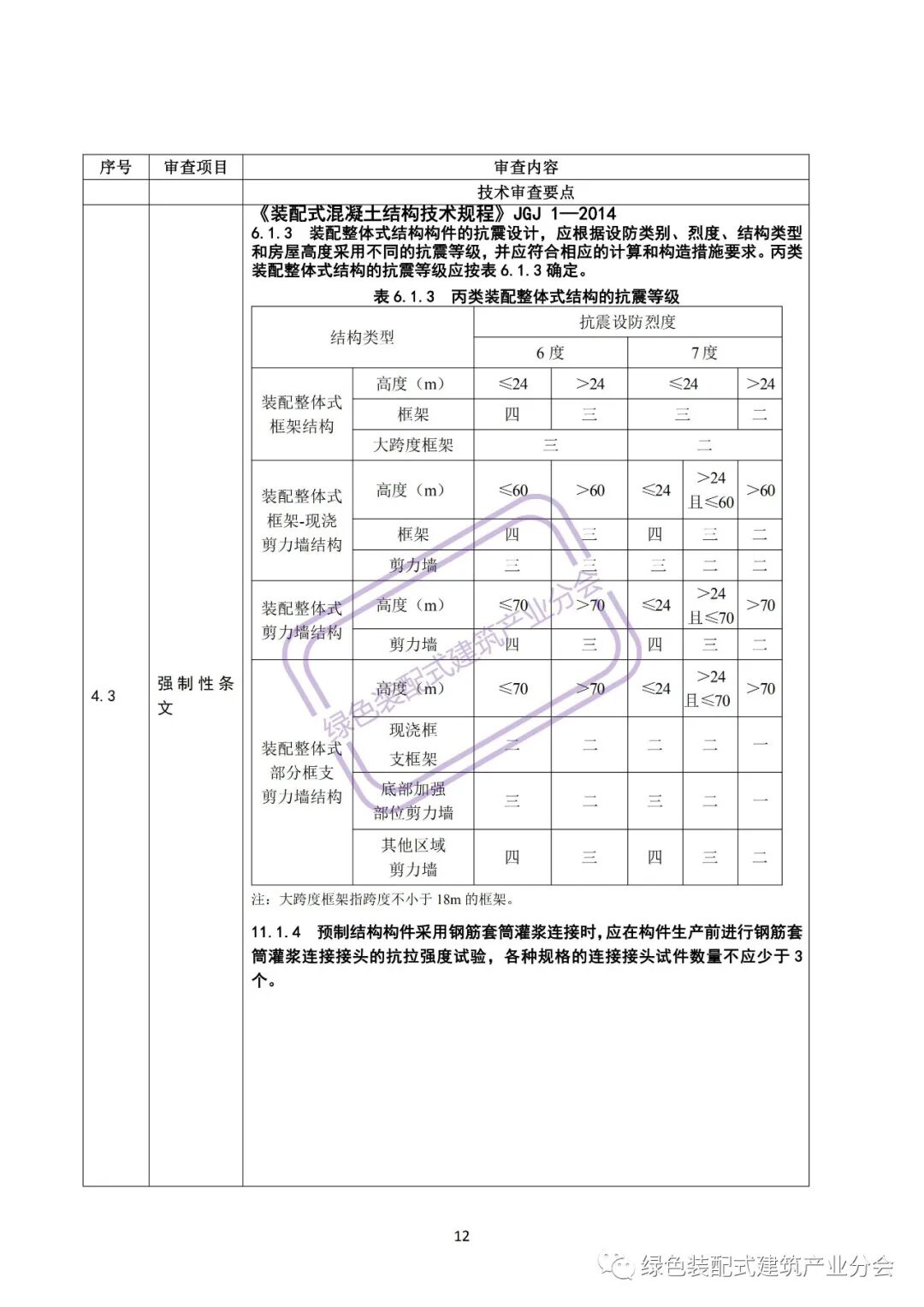 1.0.5 本要点列入了《装配式混凝土建筑技术标准》GB/T 51231-2016 和《装配式混凝 土结构技术规程》JGJ1-2014 中的强制性条文。其它工程建设标准中的强制性条文从略。