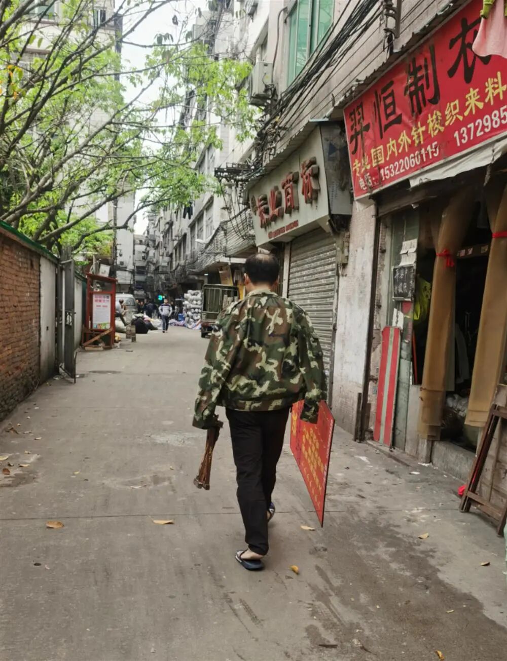 这里是广州著名的“制衣村”。在城中村老旧的握手楼之间,街巷蜿蜒,大大小小的制衣厂遍布其间,向外探出五颜六色的招牌和横七竖八的电线。窄窄的街面上,人头攒动。拉货的电动车和破旧面包车急促地按着喇叭,在人流中艰难穿行。每隔几分钟,就有一辆载着几米高垃圾的三轮车汇入其中,它们负责运输这里每天产生的数十吨废料。城中村的道路被堵得水泄不通,维持秩序的城管不得不手拉手将人群向两边驱赶,他们手里的喇叭在发出尖厉的“嘀嘀”声后,循环播放着:“招工靠两边,别挡路中间!招工靠两边,别挡路中间!”