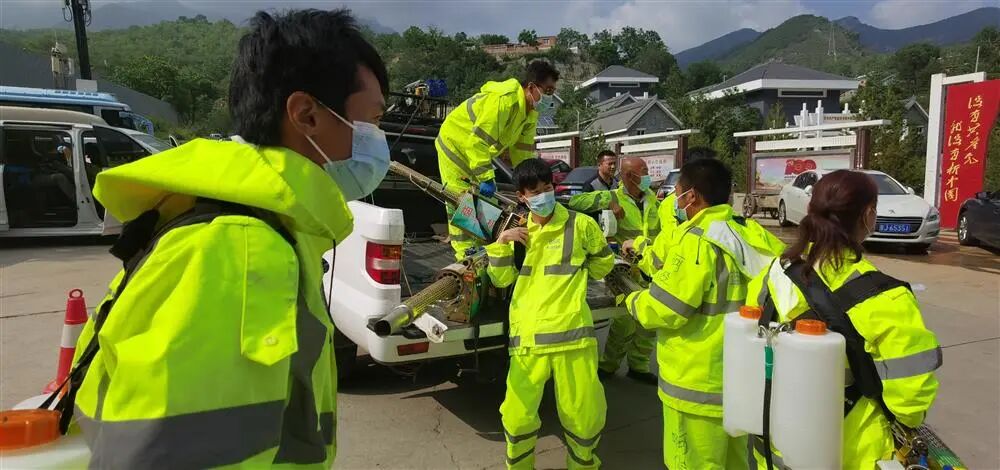 救援队队员进行消杀作业。郑子愚摄