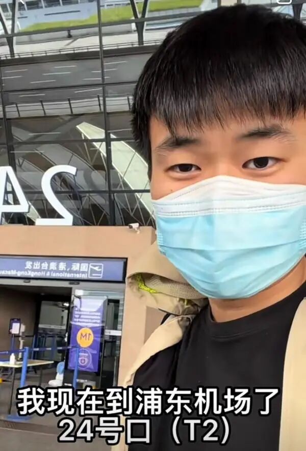 阿俊在坐机场巴士去虹桥机场的路上。受访者供图