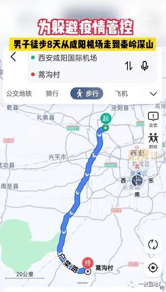 一位兄弟,当他12月16日听说西安要封城,考虑到自己在西安无房无钱无工“三无”,又听说隔离需要自费,立即从咸阳机场出发,徒步走入秦岭大山,像当年游击队抗日一样,爬沟越崖,躲过沿途村镇疫情监测卡点,于24日进入宁陕县被扣留。