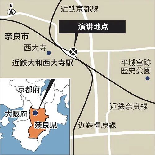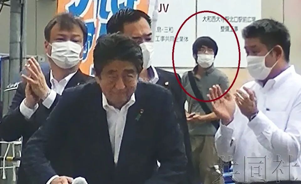 安倍晋三在日本奈良市发表街头演说时曾与枪手同框