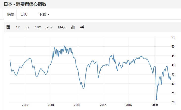 如今,日本的消费者信心指数已经降得足够低,仅次于08年金融危机和20年疫情。