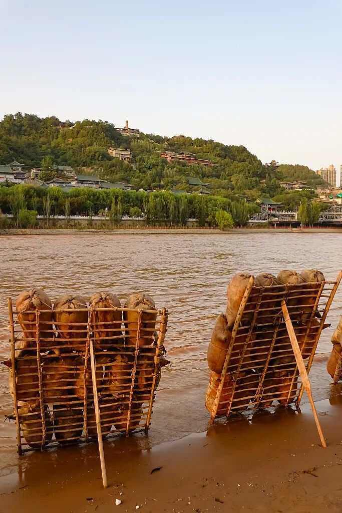 黄河边,渡河人制作羊皮筏子 / 俊杰 POCO