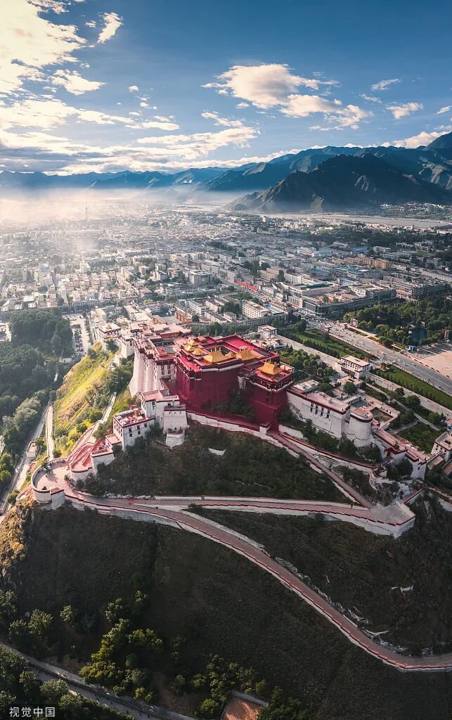 从布宫身后航拍拉萨