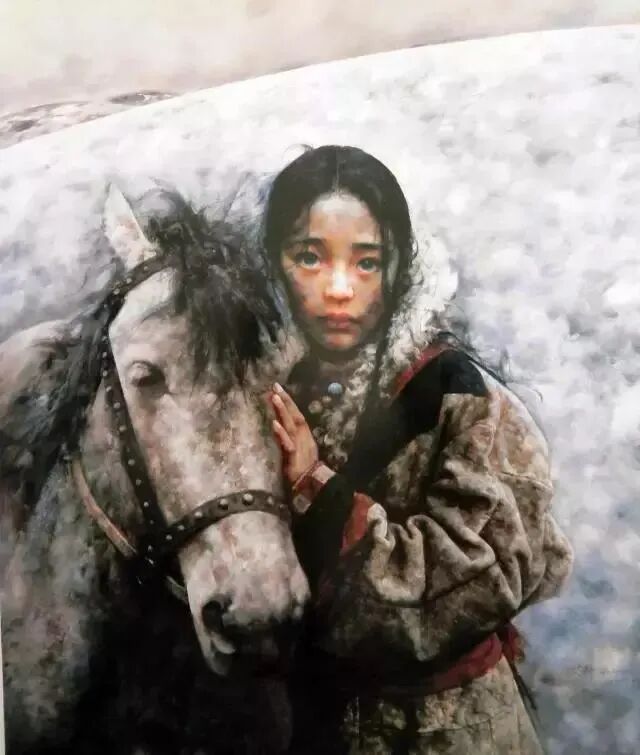 艾轩笔下的高原少女与马