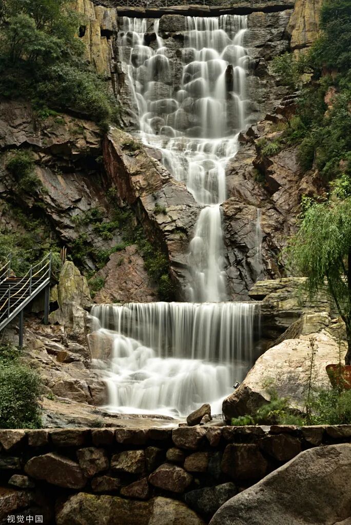 沿陡峭山体,飞流直下