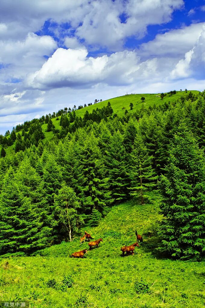 承德满族蒙古族自治县,围场中的马群和放牧人