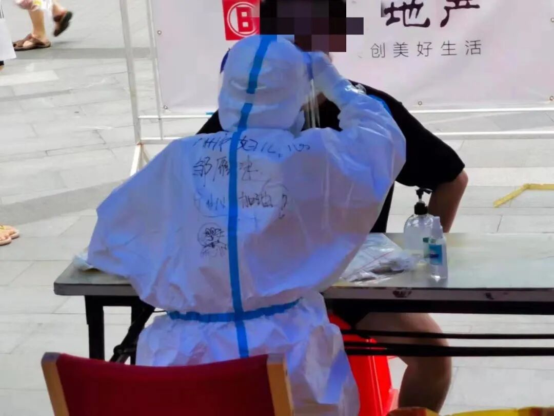 我叫邹雁冰,27岁,2016年入职市妇儿中心,本来在手术室工作。5月26号开始支援抗疫,去了越秀、花都、黄埔区的很多个点,后来在6月10日来到高风险区白鹤洞。当天刚刚报到,还没有去酒店放行李,我们就去支援社区做核酸检测了,那天晚上做到了将近12点。