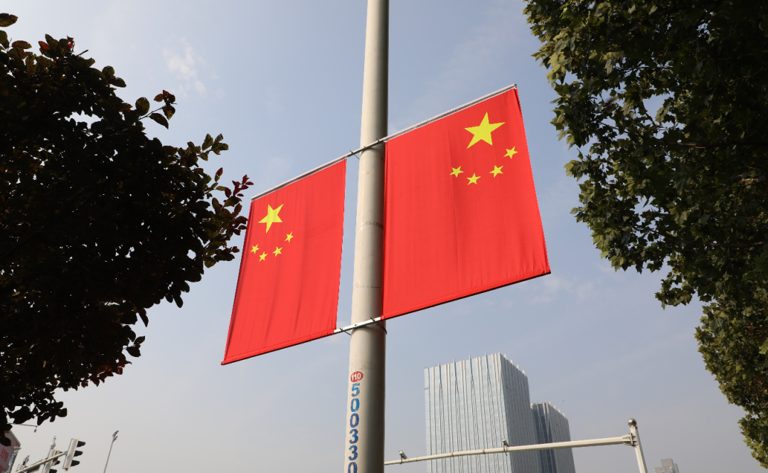 悬挂起鲜艳的国旗