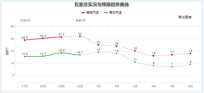 5日早晨,石家庄、沧州及以南地区最低气温降至5~10℃,坝上地区-8~-5℃,其他地区-4~4℃。