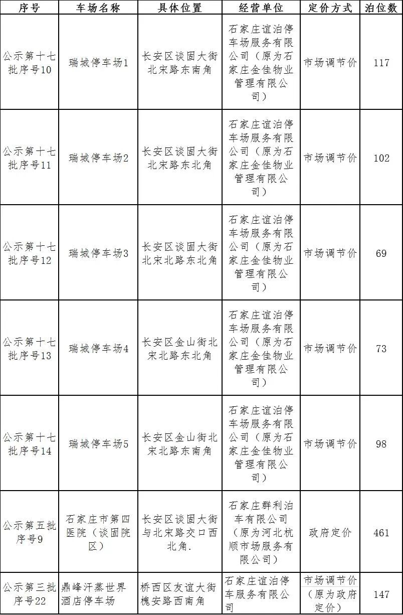 10月18日,石家庄市公安局交通管理局依照《石家庄市停车场管理办法》有关规定,对河北丰驿停车场等 17个公共停车场、共计1981个停车泊位进行了备案,现予以公示。截止目前,全市已对1250个停车场、186370个泊位进行了备案公示。