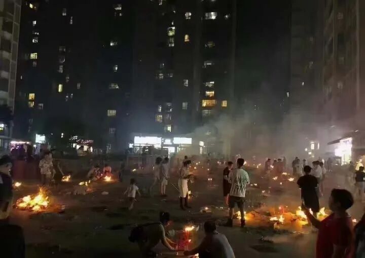 楼盘建的这么密集,房价自然低,7、8千的样子,据说这个楼盘成功拉低了贵阳整体房价,给年轻人减负不少。但是带来的问题就是人员比较杂,鱼龙混杂,三教九流的人员都聚集于此,诈骗、高利贷、黄赌毒……治安不是很好,刚刚看了新闻这个社区又开启整治行动了。而且这个小区拆迁的人不少,每到中元节,小区就成了这个样子,逼仄之中又增添了一丝诡异。这个地方最为著名,被称为“炮楼”,因为年轻人多的地方,酒店也就多,但是这么密集,还是挺壮观的。
