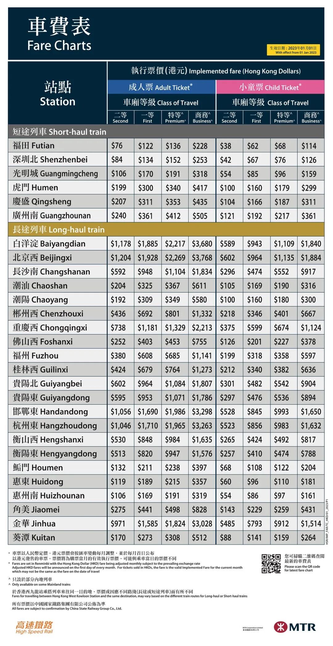 通通在港铁高速铁路公司官网了解到,港铁高速铁路公司已经更新了香港西九龙站前往内地办客车站票价表,看来香港西九龙站离恢复正常运营已经不远了。