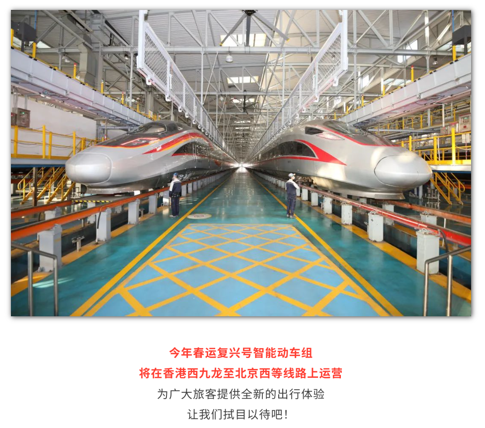 近日,配属广铁集团的CR400BF-Z复兴号智能型动车组抵达广州动车所。此次广州动车所一共配属8组CR400BF-Z,均由中车唐山厂生产。广铁表示,今年春运,复兴号智能动车组将在香港西九龙至北京西等线路上运营,可谓“一炮双响”——一方面透露了香港西九龙站将在春运期间恢复正常运营,另一方面也告诉大家,复兴号智能动车组将开进香港西九龙站。各位去香港的小伙伴又多一种车型可以选择了。