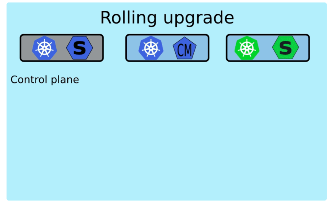 原地升级意味着所有组件将大致同时升级。如果你通过配置管理更改所需的 API Server版本并推送新配置,则所有 API Server在收到新配置后都会升级。这与我们稍后讨论的滚动升级不同。