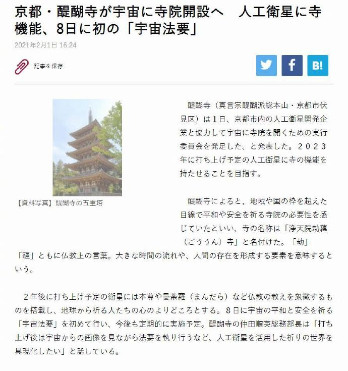 出家人不打诳语,这不是开玩笑。发起宇宙寺院项目的是京都醍醐寺,是日本佛教真言宗醍醐派的总寺,有一千多年的历史,也是日本最大(最有钱)的佛教寺院之一。