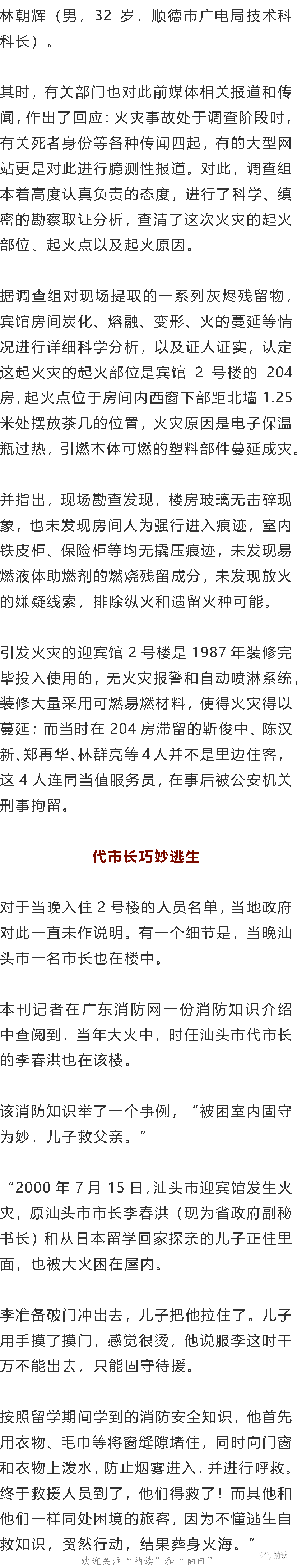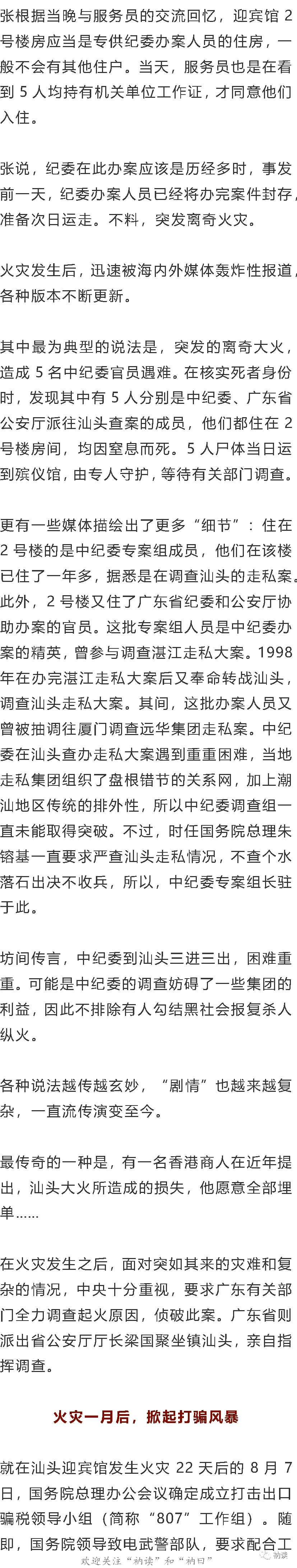 2000年,汕头迎宾馆发生大火,由于火灾中丧生的两人是正在调查一起严重违法违纪案件的纪委干部,其背景又是汕头“骗税”案的大规模爆发时期,一时间,外界猜测纷纭。