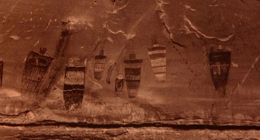 影片开头音乐即在观众未察觉的时刻伴随而来,褐色泥墙上特殊的符号,充满了宗教神秘感和纯朴的文化渊源,有一种历史长河由此开始流淌的暗示。接着即慢镜头展示雪花飘落机械倒塌场景,若看完整片不难发现这两处皆有在片尾再次出现,深化“失衡”的主题,形成回字结构。