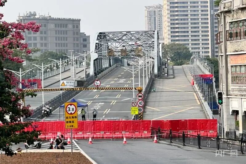 广州海珠桥实施临时交通管控(央广网记者 黄璐璐 摄)