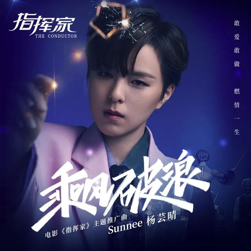 《乘风破浪》作为电影《指挥家》的主题推广曲,特邀新生代歌手Sunnee杨芸晴倾情献唱; Sunnee杨芸晴别具特色的声线,以及动人婉转的声音,淋漓尽致的演绎出了该歌曲所要呈现的意境,使听众积极向上,催人奋进;同时该歌曲更是她2021年开年第一曲。“我要乘风破浪,指挥万丈光芒,用这一生谱写,华丽乐章;看黎明的曙光,融化了雪和霜,我就是独一无二的宝藏,要乘风波浪”,在悠扬悦耳的曲调和激励人心的歌词中,我们能感受到电影女主角对梦想的执着追求和不惧风雨的坚定。歌曲中蕴含的力量和安东尼娅曲折艰辛的奋斗史,为影片带来振奋人心的强大能量,也让观众见证了古典乐坛女性时代的来临。