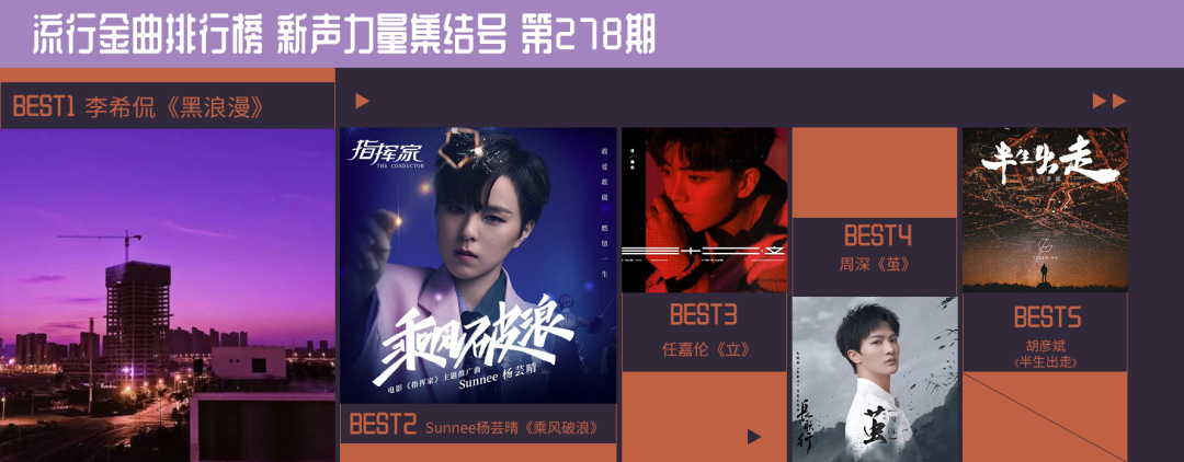 流行金曲排行榜作为国内知名的音乐榜单,始终致力于发掘华语音乐新声力量,为更多音乐人制造机会和平台去展现出作品,扩大华语音乐的影响力,让国内更多的音乐人能够拥有舞台去展现风格和创作,为新声力量保驾护航。