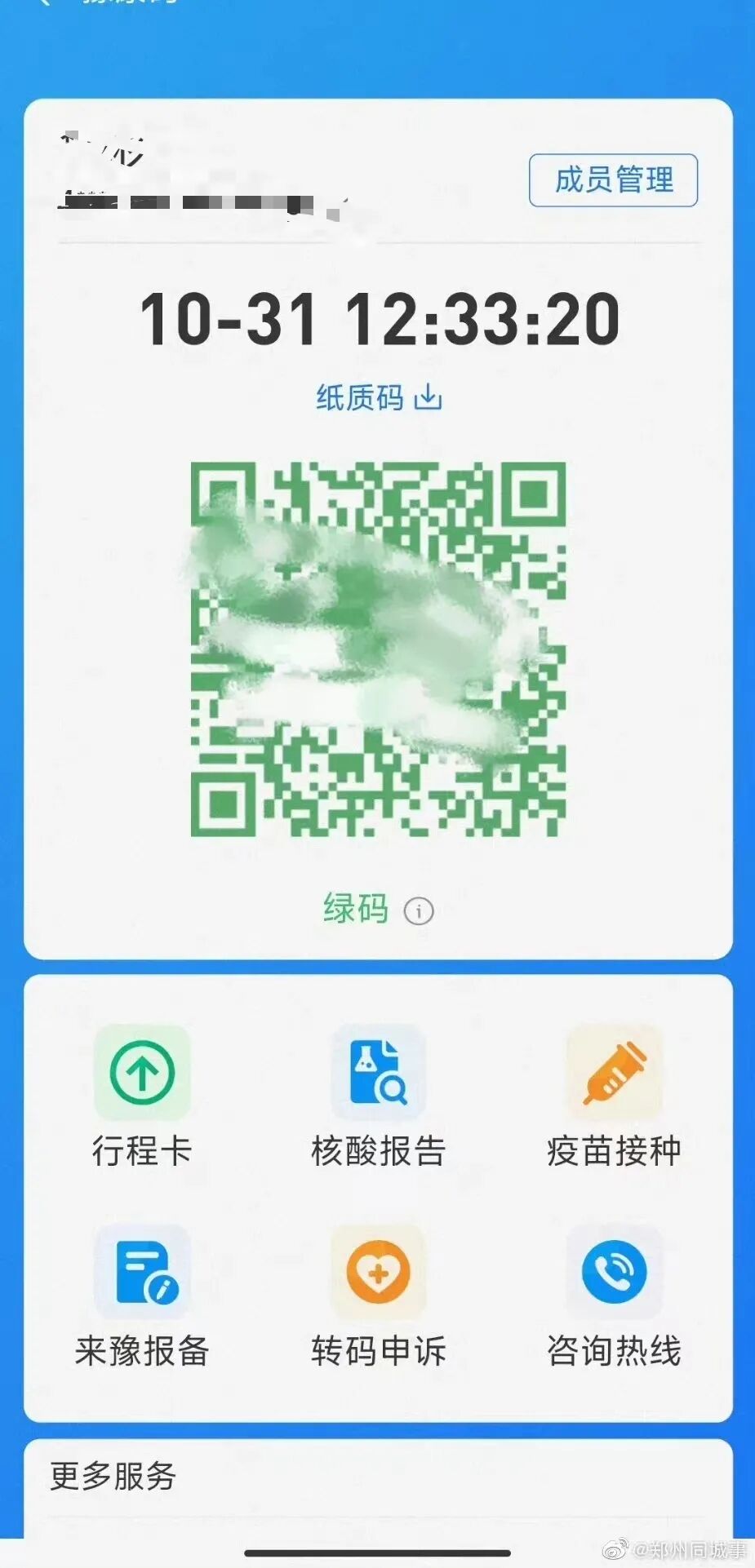 10月31日,从支付宝上看到河南豫康码进行了新升级,升级后可以轻松切换亲属码,成员管理支持修改成员信息,下载打印纸质码随身携带。豫康码展码可打开“来豫报备”、查询拨打本地咨询电话,查10天内核酸结果及附近核酸采样点,行程卡免切换更方便。