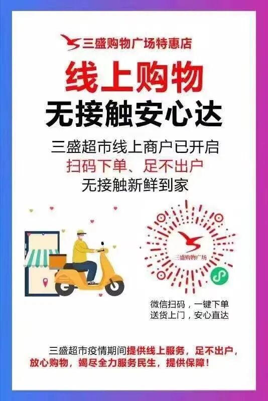 为做好疫情防控工作,保障全市生活必需品市场供应,市商务局快速整合互联网、供应链及物流资源等方面优势,汇总筛选了多家商超线上下单渠道,为居民提供生活必需品“线上下单、线下配送”服务,广大居民足不出户,享受“送货到家”。