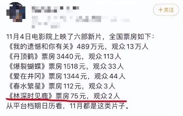 6 ►史上“最惨”新片:《林深时见麓》首日票房实际仅有56元